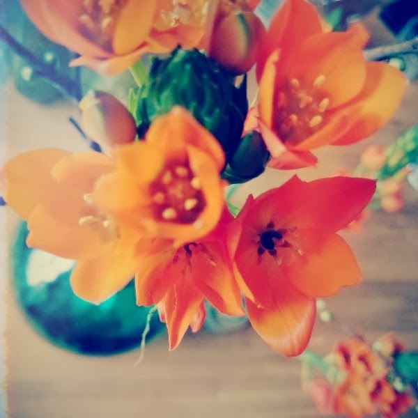 Dat is wel een aardige omschrijving van mijn week. En de hele week was ik niet zo veel thuis, maar als ik thuis was, was het genieten. We hebben hier nog vaak de houtkachel aan, maar vieren ook vast de komst van de lente met veel glas, bloesemtakken en bloemetjes.